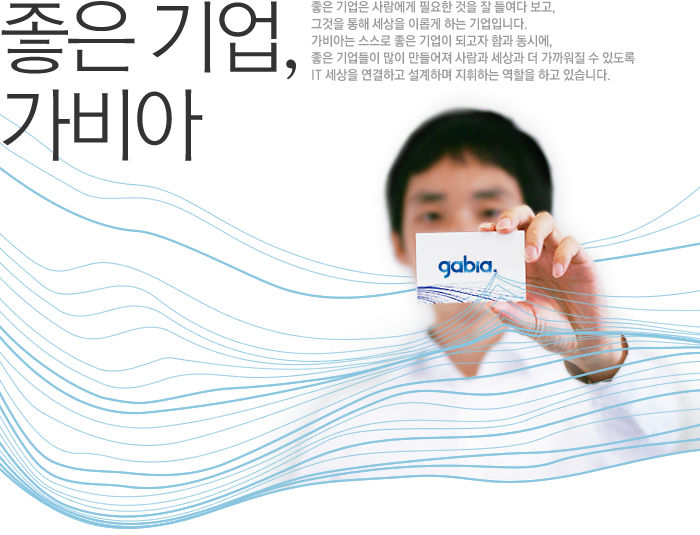 가비아는 인터넷 비즈니스의 기반이 되는 도메인, 호스팅, 홈페이지 제작은 물론 쇼핑몰, 웹메일, 그룹웨어, 웹하드, 전자세금계산서 등의 기타 솔루션 개발까지 전반적인 인터넷 비즈니스 인프라를 제공하는 업체입니다. 1998년 설립된 가비아는 매년 30% 가까운 성장율을 자랑하며 지난 2005년엔 동종 업계 최초로 코스닥에 상장하는 쾌거를 이룩, 업계 선두로서의 입지를 공고히 하고 있습니다. 가비아는 총 48만여개를 보유하고 있는 도메인 부문과 약 6만여명의 고객을 보유한 호스팅 사업부문, 500여개 사이트의 제작경험을 가진 웹사이트 제작 부문이 주요 사업 부문입니다. 특히 기존의 주력사업을 기반으로 한 중소사업자 대상의 비즈니스 포털 '하이웍스'를 통해서 향후 통합형 기업 웹메일 및 그룹웨어 사업에 대한 시장 확대를 점차적으로 꾀해 나갈 예정입니다. 가비아는 처음 시작할 때와 똑같은 마음으로, 항상 고객의 입장에서 생각하고 고객과 함께 성장해 나가고자 합니다. 단순히 최저가를 제시하거나 상품과 서비스를 효율적으로 공급하는 것에 만족하지 않고, 토탈 웹서비스를 위한 전문적인 컨설팅, 다양한 전문 솔루션 개발의 지속적인 수행을 통해 인터넷 산업의 인프라를 구축하는 선두주자로서 가비아는 그 역할을 계속해 나가겠습니다. |